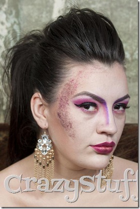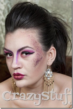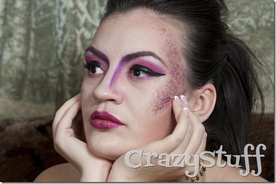 Atunci cand m-am apucat cu Suzana sa facem machiaje de Halloween am plecat de la ideea de zana gone bad ca la terminarea machiajului sa nu mai stim exact ce reprezinta. Am incercat sa fac toate liniile cat mai geometric posibil si exagerate pentru a parea cat mai dura, dupa care a venit Suzana cu sclipiciul si toate s-au amestecat, spre surprinderea noastra, destul de bine.